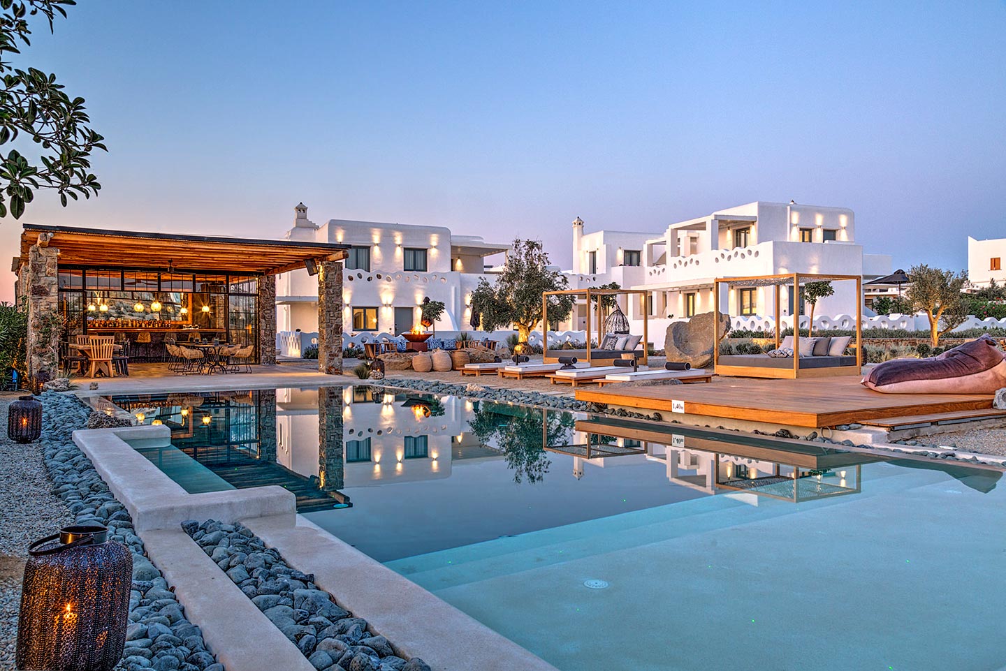 Portes Mykonos Suites & Villas, boasts a privileged location, in the heart of the island, 2 km from the vibrant Mykonos town, and only 850 m away from the cosmopolitan Psarou beach.